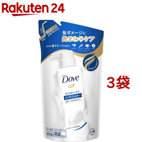 お店TOP>ダヴ モイスチャーケア コンディショナー 詰替 (350g*3袋セット)商品区分:化粧品【ダヴ モイスチャーケア コンディショナー 詰替の商品詳細】●ダヴの2Wayケアで、髪の内側も外側もうるおいケア。 うっとりするほど、なめらかな髪へ●モイスチャーミルクEX(うるおい成分)が髪になじんで内側まで浸透し、うるおいを届ける。 髪の外側をベールのようにつつみこみ、うるおいを守る【販売名】ダヴMヘアコンディショナーC【使用方法】・シャンプー後、適量を髪になじませてからすすぎ流してください。 【成分】水、ステアリルアルコール、グリセリン、ジメチコン、ベヘントリモニウムクロリド、DPG、パラフィン、アモジメチコン、乳酸、安息香酸Na、(C12-14)s-パレス-7、EDTA-2Na、フェノキシエタノール、セトリモニウムクロリド、PEG-7プロピルヘプチルエーテル、(C12-14)s-パレス-5、酢酸、PEG-180M、ブチルカルバミン酸ヨウ化プロピニル、香料【注意事項】・頭皮に傷・はれもの・湿疹等、異常があるときは使用しないでください。 ・刺激等の異常が現れたときは、使用を中止し、皮ふ科医等にご相談ください。 ・目に入ったときは、すぐに洗い流してください。 ・他のコンディショナーとは混ぜず、必ず、ダヴ モイスチャーケア コンディショナーの使用済みポンプボトルにつめかえてください。 ・つめかえ前に空のボトルの中とポンプ部を水道水でよく洗い、乾燥させてから一度に全量をつめかえてください。 ・つめかえ後は、パックの製造番号を記録するか、切り取ってポンプボトルに貼り付けてください。 (製品についてのお問い合わせの際に必要な場合があります。 )【原産国】日本【ブランド】ダヴ(Dove) ヘア【発売元、製造元、輸入元又は販売元】ユニリーバ※説明文は単品の内容です。 商品に関するお電話でのお問合せは、下記までお願いいたします。 受付時間9:00-17:00(土・日・祝日、年末年始を除く)ヘアケア製品:0120-500-513スキンケア製品:0120-110-747ポンズインスティテュート:0120-500-076ホームケア製品:0120-362-170紅茶製品:0120-238-827リニューアルに伴い、パッケージ・内容等予告なく変更する場合がございます。 予めご了承ください。 (ダブ dove リンス ヘアケア 髪ダメージ 切れ毛 摩擦ケア パサつき うねりケア ダメージケア うるおい ヘアダメージ 枝毛 摩擦ケア 乾燥 ダメージ補修 しっとり 詰め替え つめかえ)・単品JAN:4902111741420ユニリーバ153-8578 東京都目黒区上目黒2-1-1 ユニリーバ・ジャパン株式会社 ※お問合せ番号は商品詳細参照広告文責:楽天グループ株式会社電話:050-5306-1825 ダヴ モイスチャーケア コンディショナー 詰替(350g*3袋セット)【ダヴ(Dove) ヘア】[うねりケア パサつき 切れ毛予防 保湿 ダメージケア] 1,135 ~