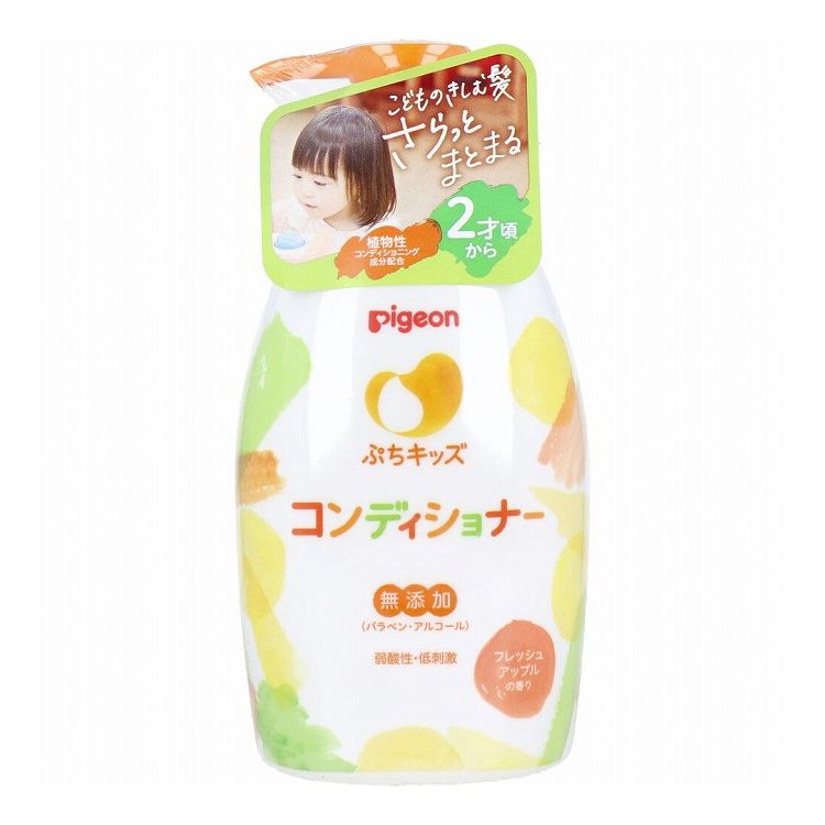 【商品詳細】【成分】水、グリセリン、ミリスチルアルコール、ステアラミドプロピルジメチルアミン、パルミチン酸ソルビタン、アミノプロピルジメチコン、クエン酸、ジメチコン、ヒドロキシエチルセルロース、カプリル酸グリセリル、香料【ご使用方法】・シャンプーの後、軽く水気を切り、適量を髪全体になじませてから、よくすすいでください。 【使用上の注意】・キズやはれもの、湿しん等異常のある部位には使用しない。 ・使用中、又は使用した肌に直射日光があたって、赤み・はれ・かゆみ・刺激等の異常が現れた場合は使用を中止する。 そのまま使用を続けると症状が悪化することがある。 ・目に入ったときは、すぐにきれいな水で洗い流す。 ・使用中、異常が現れた場合、異常が出た部位の専門科医に相談する。 ・乳幼児の手の届かないところに保管する。 ・お子様が使用する場合は、必ず保護者の目の届くところで使用させる。 ・極端に高温や低温、多湿な場所、直射日光のあたる場所には保管しない。 個装サイズ:80X159X56mm個装重量:約344g内容量:300g製造国:日本商品区分:化粧品【発売元:ピジョン株式会社】【送料について】北海道、沖縄、離島は送料を頂きます。 ぷちキッズ 泡シャンプーニオイすっきり さわやかシャボンの香り 本体 300mLニオイすっきり さわやかシャボンの香り 詰替用 240mLからまりするん フレッシュアップルの香り 本体 300mLからまりするん フレッシュアップルの香り 詰替用 240mLぷちキッズ コンディショナーフレッシュアップルの香り 本体 300gフレッシュアップルの香り 詰替用 240g ピジョン ぷちキッズ コンディショナー フレッシュアップルの香り 本体 300g 無添加コンディショナー【ポイント10倍】 1,100 ~
