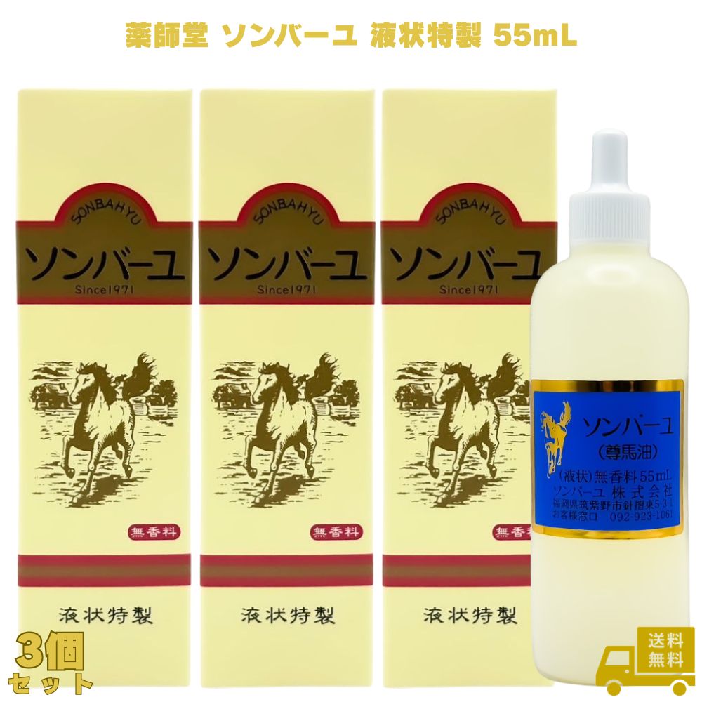 薬師堂 ソンバーユ 液状特製 55ml 無添加 スキンケア オイル リキッド 液体 尊馬油 馬油 馬油液 国産馬油 国産 髪 顔 唇 手 全身 無香料 無添加 乾燥肌 保湿 化粧下地 オイル ローション ベビーオイル 赤ちゃん 子ども 子供 大人 角質 スポイト 潤い 艶 ツヤ つや 持ち運び 【軽やかな使い心地の液状タイプ馬油】 「ソンバーユ 液状特製」は、 馬油の中でも比重の軽い部分のみを抽出・精製した液状タイプの保湿用オイルです。 なめらかに広がり、ベタつきにくい使用感が特長で、 朝のスキンケアや夏場の保湿ケアにも使いやすいと好評です。 【国産馬油100%を使用】 原料には、精製度の高い国産馬油を100%使用。 馬油特有のにおいが抑えられており、 顔・からだ・髪など全身の保湿ケアにお使いいただけます。 【化学的な加工をおこなわない、成分無調整馬油】 ソンバーユ製品に使用されている馬油は、 一切化学的な加工を行わず、馬油本来の性質を活かした成分無調整。 シンプルな処方のため、 年齢や性別を問わず使いやすいスキンケアアイテムです。 【こんな方におすすめ】 ・ベタつきにくいオイルを探している ・成分がシンプルな保湿ケアを選びたい ・家族で使えるスキンケアアイテムを探している ・国産原料・製造にこだわりたい 商品説明 商品名 ソンバーユ メーカー 薬師堂 商品区分 化粧品 内容量 55ml 成分 馬油 製造国 日本 広告文責 株式会社KH-online TEL:0486-06-3886 薬師堂 ソンバーユ 液状特製 55ml 3個 無添加 スキンケア オイル リキッド 液体 尊馬油 馬油 馬油液 国産馬油 国産 髪 顔 唇 手 全身 無香料 無添加 乾燥肌 保湿 化粧下地 オイル ローション ベビーオイル 赤ちゃん 子ども 子供 大人 角質 スポイト 潤い 艶 ツヤ つや 4,480 ~