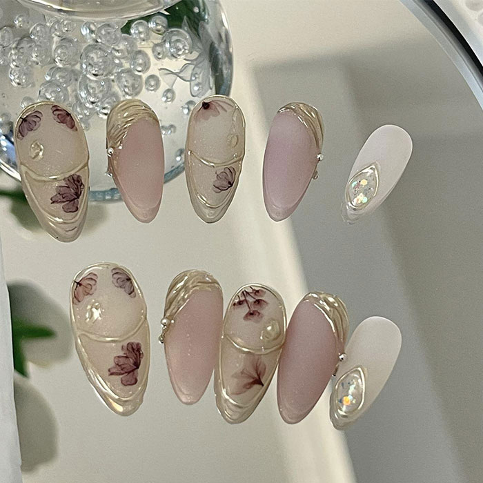 【送料無料】24枚入 人気 ネイルチップ 付け爪 チップ 3D 手作り 和風 花嫁ネイル 光沢 つけ爪