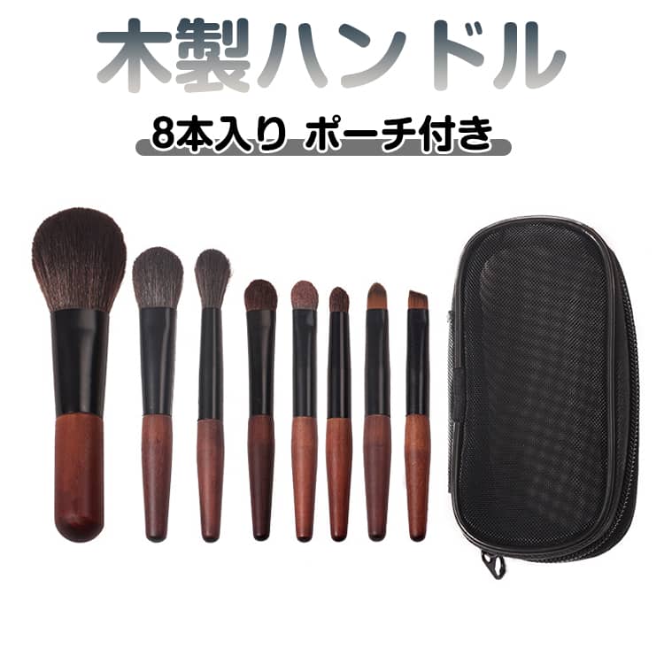 メイクブラシセット ポーチ付き 持ち運び メイクブラシ セット メイク 初心者 セット 化粧ブラシ ブラシ8点入 高級繊維毛 馬毛 木製 ハンドル 収納 化粧筆 化粧ブラシセット 携帯便利 送料無料 2,140 ~