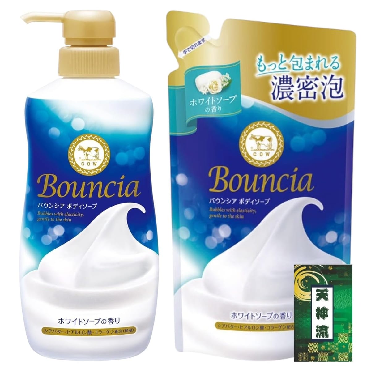牛乳石鹸 バウンシア ボディソープ ホワイトソープの香り ポンプ 480ml + 詰め替え 360mlバウンシア史上最高の濃密泡でうるおい守る、保湿ボディソープ新エクストラリッチフォーム処方で、泡立てがもっと簡単にキメ細かな泡のクッションが疲れた体を包み込み、洗い上がりしっとりなめらか心やすらぐひとときに美肌成分…シアバター・ヒアルロン酸・コラーゲン配合お湯を含ませたタオルやスポンジなどに適量を出し、よく泡立ててから洗い、あとは流してください 牛乳石鹸 バウンシア ボディソープ ホワイトソープの香り ポンプ 480ml + 詰め替え 360ml 商品紹介バウンシア史上最高の濃密泡でうるおい守る、保湿ボディソープ新エクストラリッチフォーム処方で、泡立てがもっと簡単にキメ細かな泡のクッションが疲れた体を包み込み、洗い上がりしっとりなめらか心やすらぐひとときに美肌成分…シアバター・ヒアルロン酸・コラーゲン配合お湯を含ませたタオルやスポンジなどに適量を出し、よく泡立ててから洗い、あとは流してください 牛乳石鹸 バウンシア ボディソープ ホワイトソープの香り ポンプ 480ml + 詰め替え 360ml 各種1個セット + 天神流くじ付 3,500 ~