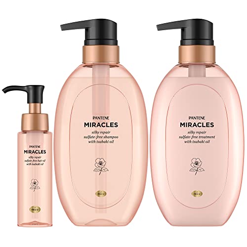 ・ピンク ・つるんと流れる奇跡のシルク髪へ説明 商品紹介 【シャンプー】 ●サルフェート無添加シャンプー ●100%天然つばき油(※ユチャ種子油(保湿成分))配合処方で傷んだ髪も内側からシルクのようなつるん髪へ ●もちふわ泡でしっとりケア ●優れた集中補修ケアに必要な成分だけを厳選配合 ●ホワイトムスクのふんわり華やかな香り ●無添加…サルフェート・パラベン・着色料・鉱物油 【トリートメント】 ●サルフェート無添加トリートメント ●100%天然つばき油(※ユチャ種子油(保湿成分))配合処方で傷んだ髪も内側からシルクのようなつるん髪へ ●軽いつけ心地で毛先までうるおう ●優れた集中補修ケアに必要な成分だけを厳選配合 ●ホワイトムスクのふんわり華やかな香り ●無添加…サルフェート・パラベン・着色料・鉱物油 【オイル】 ●サルフェート無添加ヘアオイル ●ずっと続くつるん髪へ ●100%天然つばき油(※ユチャ種子油(保湿成分))配合 ●軽くさらりとしたテクスチャー ●ホワイトムスクのふんわり華やかな香り ●無添加…サルフェート・パラベン・着色料・鉱物油 ●中国製 原材料・成分 【シャンプー】 水、ラウラミドプロピルベタイン、ココイルイセチオン酸Na、クエン酸Na、クエン酸、ポリクオタニウム-10、香料、安息香酸Na、EDTA-4Na、アクリレーツコポリマー、パンテノール、パンテニルエチル、ユチャ種子油、ヒスチジン、メチルクロロイソチアゾリノン、メチルイソチアゾリノン 【トリートメント】 水、ビスアミノプロピルジメチコン、ステアリルアルコール、ベヘントリモニウムクロリド、セタノール、イソプロパノール、香料、ベンジルアルコール、EDTA-2Na、パンテノール、パンテニルエチル、ユチャ種子油、ヒスチジン、クエン酸、メチルクロロイソチアゾリノン、メチルイソチアゾリノン 【オイル】 シクロペンタシロキサン、ジメチコノール、変性アルコール、香料、酢酸トコフェロール、パンテノール、パンテニルエチル、ユチャ種子油、水 パンテーン ミラクルズ シルキーリペア シャンプー+トリートメントポンプセット+洗い流さないトリートメントオイル 無添加 4,330 ~