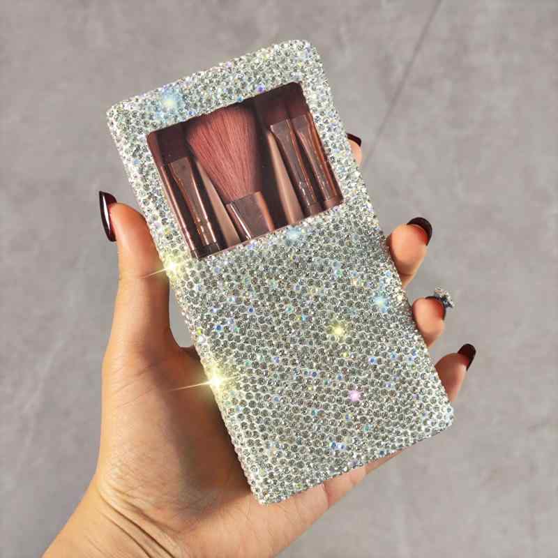 メイクブラシ セット 旅行 携帯 鏡付き ミニ 豪華感 ジルコニア フェイスブラシ アイシャドウブラシ チークブラシ 電気メッキ加工 ボックス付き[ "・カテゴリ: メイク道具セット", "・仕様: 半円形5点セット", "・用途: メイクアップ", "・肌質: 全肌質", "・種類: メイクブラシ", "・色: 白", "・タイプ: 長方形", "・対象: 一般"]