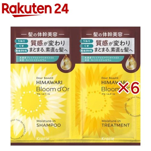 お店TOP>化粧品>ヘアケア>シャンプー>シャンプー全部>ディアボーテ ブルームドール トライアルセット(シャンプー&トリートメント) (6セット)商品区分:化粧品【ディアボーテ ブルームドール トライアルセット(シャンプー&トリートメント)の商品詳細】●髪のゆがみに加え、乾燥浮き毛を整え、使うたび、内部密度が高まる●高濃度プレミアムヒマワリオイルEX配合●浸透・モイストステムセラム配合。髪内部に浸透し、うるおいで満たす●髪ゆがみケアテクノロジー●ノンシリコンシャンプー●アミノ酸系洗浄成分配合(シャンプー)●全品サルフェートフリー●輝く瞬間を包みこむウォータリーブーケの香り【販売名】HM Pシャンプー、HM Pトリートメント【使用方法】・SP:髪をぬらし、適量を髪全体につけ、充分に泡立てて洗い、その後よくすすいでください。・TR:シャンプー後、適量を髪になじませてから、すすいでください。【セット詳細】シャンプー10mL+トリートメント10g【成分】・SP:水、ラウラミドプロピルベタイン、ラウロイルメチルアラニンNa、イソペンチルジオール、ココイルグルタミン酸TEA、ヤシ油脂肪酸PEG-7グリセリル、ジラウラミドグルタミドリシンNa、ヒマワリ種子油脂肪酸フィトステリル、グリセリン、ヒマワリ種子油、ヒマワリ種子エキス、ヒマワリ花エキス、ポリクオタニウム-7、ポリクオタニウム-22、クエン酸、ラウリン酸PEG-2、ポリクオタニウム-10、セテアレス-60ミリスチルグリコール、グアーヒドロキシプロピルトリモニウムクロリド、ピロ亜硫酸Na、塩化Na、BG、EDTA-2Na、安息香酸Na、香料・TR:水、セテアリルアルコール、ジメチコン、グリセリン、ジラウラミドグルタミドリシンNa、ヒマワリ種子油脂肪酸フィトステリル、ポリクオタニウム-107、ヒマワリ種子油、ヒマワリ種子エキス、ヒマワリ花エキス、PPG-2アルギニン、ミツロウ、乳酸、パラフィン、ビスジグリセリルポリアシルアジペート-2、ベヘナミドプロピルジメチルアミン、DPG、グリコシルトレハロース、水添ポリイソブテン、加水分解水添デンプン、イソプロパノール、(PEG-40/PPG-8メチルアミノプロピル/ヒドロキシプロピルジメチコン)コポリマー、ネオペンタン酸イソデシル、ラウレス-4、ラウレス-23、ステアリン酸PEG-55、クエン酸、BG、ステアルトリモニウムクロリド、安息香酸Na、メチルパラベン、香料、カラメル【注意事項】・頭皮に合わない時、傷・湿しん等、異常のある時は使用しないでください。・ご使用中、赤み・かゆみ・刺激等の異常が現れた時は使用を中止し、皮フ科専門医等へのご相談をおすすめします。そのまま使用を続けると症状が悪化することがあります。・目に入らないよう注意し、入った時はすぐ洗い流してください。目に異物感が残る場合は、眼科医にご相談ください。・乳幼児の手の届かないところに置いてください。【原産国】日本【ブランド】ディアボーテ(Dear Beaute)【発売元、製造元、輸入元又は販売元】クラシエ※説明文は単品の内容です。リニューアルに伴い、パッケージ・内容等予告なく変更する場合がございます。予めご了承ください。・単品JAN:4901417704054クラシエ108-8080 東京都港区海岸3-20-200120-540-712広告文責:楽天グループ株式会社電話:050-5577-5043[シャンプー/ブランド:ディアボーテ(Dear Beaute)/] ディアボーテ ブルームドール トライアルセット(シャンプー&トリートメント)(6セット)【ディアボーテ(Dear Beaute)】 646 ~