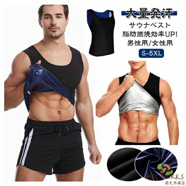 大量発汗サウナベスト脂肪燃焼効率UP!男性用/女性用S-5XL【おすすめポイント】・気になる箇所で集中発汗気になるお腹や背中周りで・発汗し、脂肪燃焼を促進適度な加圧で瞬間スリム・お腹周りに圧を加える特別設計薄くても耐久性の高い素材ハードなトレーニングにも耐えられる素材を採用●ポイント1特殊生地による発汗力速乾素材は汗を素早く吸収して体を乾燥させ、保温ポリマーは皮膚の水分を保持して乾燥を防きます。 この組み合わせにより発汗効果が最大限に引き出されます。 ●ポイント2発汗効果を高める3層構造・外側からの冷気を通さにくくし保温効果を高めます・中間層 PUシルバーコート採用優れた保温性と蓄熱性で新陳代謝アップ・ナノコーティング層熱を逃さない保温効果で発汗力UP●ポイント3動きやすいストレッチ素材ストレッチ伸縮素材を採用しているため、動きやすく運動に最適!ウオーキング、ランニング、筋トレやヨガなどのエクササイズ時や普段の防寒着としてもお使い頂けます。 ●ポイント4シャカシャカしない静音生地柔らかでなめらかな素材なのでシャカシャカ音が発生しづらく周りを気にせずトレーニングできます。 ●ポイント5高い保温性PUシルバーコートを採用厳選したPUシルバーコーティング採用。 高い保温・蓄熱性により運動時の発汗を促進。 優れた伸縮性と耐久性ボリエステルとシルパーコーティングは耐水性強い同時に変形や引き製きがしにくい。 素材の性質上、手洗いでのお洗濯を推奨しておりますが、洗濯機でのお洗濯や脱水もOK! サイズ S/M L/XL 2XL/3XL 4XL/5XL サイズについての説明 ※上記サイズは平置き実寸になります。 サイズ表の実寸法は商品によって1-3cm程度の誤差がある場合がございます。 (単位:cm) 素材 ポリエステル、スパンテックス (内側ナノコーディング) 色 男性用/ブラック×ブルー 男性用/ブラック×シルバー 女性用/ブラック×ブルー 女性用/ブラック×シルバー 備考 ●サイズ詳細等の測り方はスタッフ間で統一、徹底はしておりますが、実寸は商品によって若干の誤差(1cm〜3cm )がある場合がございますので、予めご了承ください。 ●製造ロットにより、細部形状の違いや、同色でも色味に多少の誤差が生じます。 ●パッケージは改良のため予告なく仕様を変更する場合があります。 ▼商品の色は、撮影時の光や、お客様のモニターの色具合などにより、実際の商品と異なる場合がございます。 あらかじめ、ご了承ください。 ▼生地の特性上、やや匂いが強く感じられるものもございます。 数日のご使用や陰干しなどで気になる匂いはほとんど感じられなくなります。 ▼同じ商品でも生産時期により形やサイズ、カラーに多少の誤差が生じる場合もございます。 ▼他店舗でも在庫を共有して販売をしている為、受注後欠品となる場合もございます。 予め、ご了承お願い申し上げます。 ▼出荷前に全て検品を行っておりますが、万が一商品に不具合があった場合は、お問い合わせフォームまたはメールよりご連絡頂けます様お願い申し上げます。 速やかに対応致しますのでご安心ください。