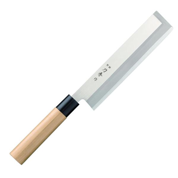 江戸菊水 鎌型 薄刃包丁 195mm 片刃 白二鋼 朴小判柄