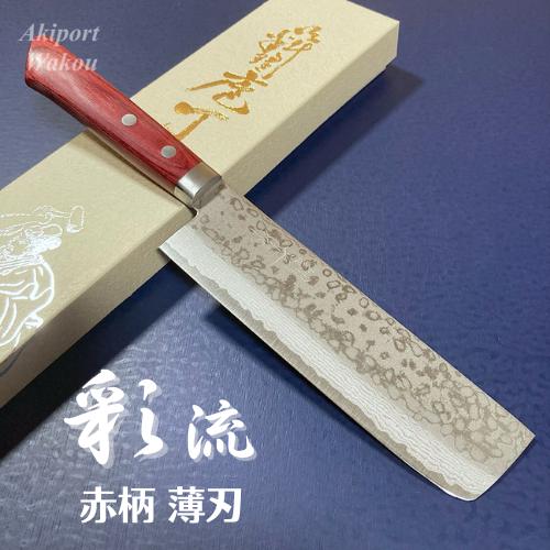 訓平作 薄刃 包丁 165mm 彩流 積層ダマスカス V金10号 赤柄 ギフト よく切れる 越前打刃物 増谷刃物製作