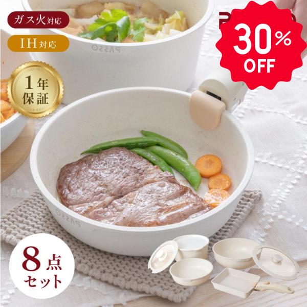 赤字セール限定30%OFF フライパン セット ih 8点 IH〜ガス火対応 取っ手が取れる 卵焼き器 ソースパン 蓋付き お弁当 鍋 キッチン passo-egg202620-set8