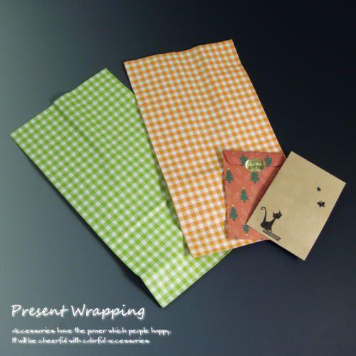 簡易ラッピング 猫とちょうちょ クリスマス チェック柄が可愛い袋タイプのラッピング シール付き