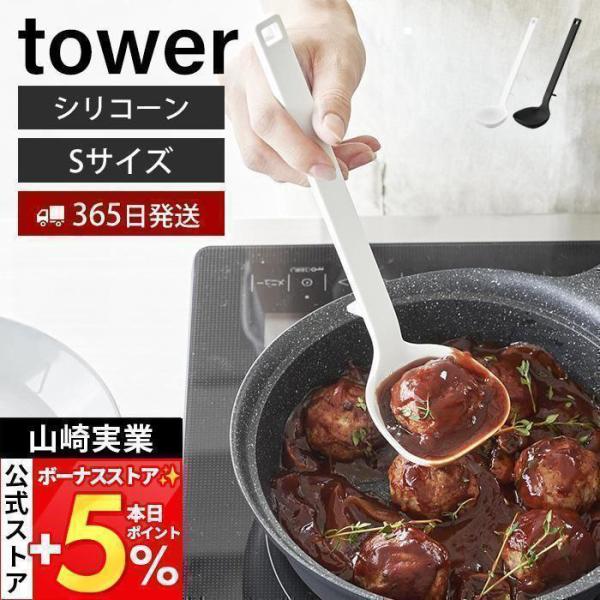 [ シリコーンお玉 タワー S ]特典付 山崎実業 tower すくいやすい 食洗機対応 大さじ おたま シリコン レードル yamazaki 公式 ブラック ホワイト 1600 1601