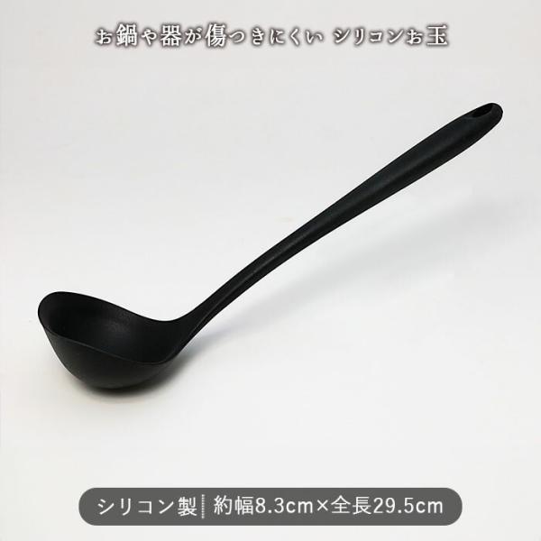 傷がつきにくい シリコン お玉 おたま 全長29.5cm シリコーン シリコンゴム 耐熱 食洗機対応 キッチンツール キッチン用品 便利 調理器具 おしゃれ 黒 ブラック