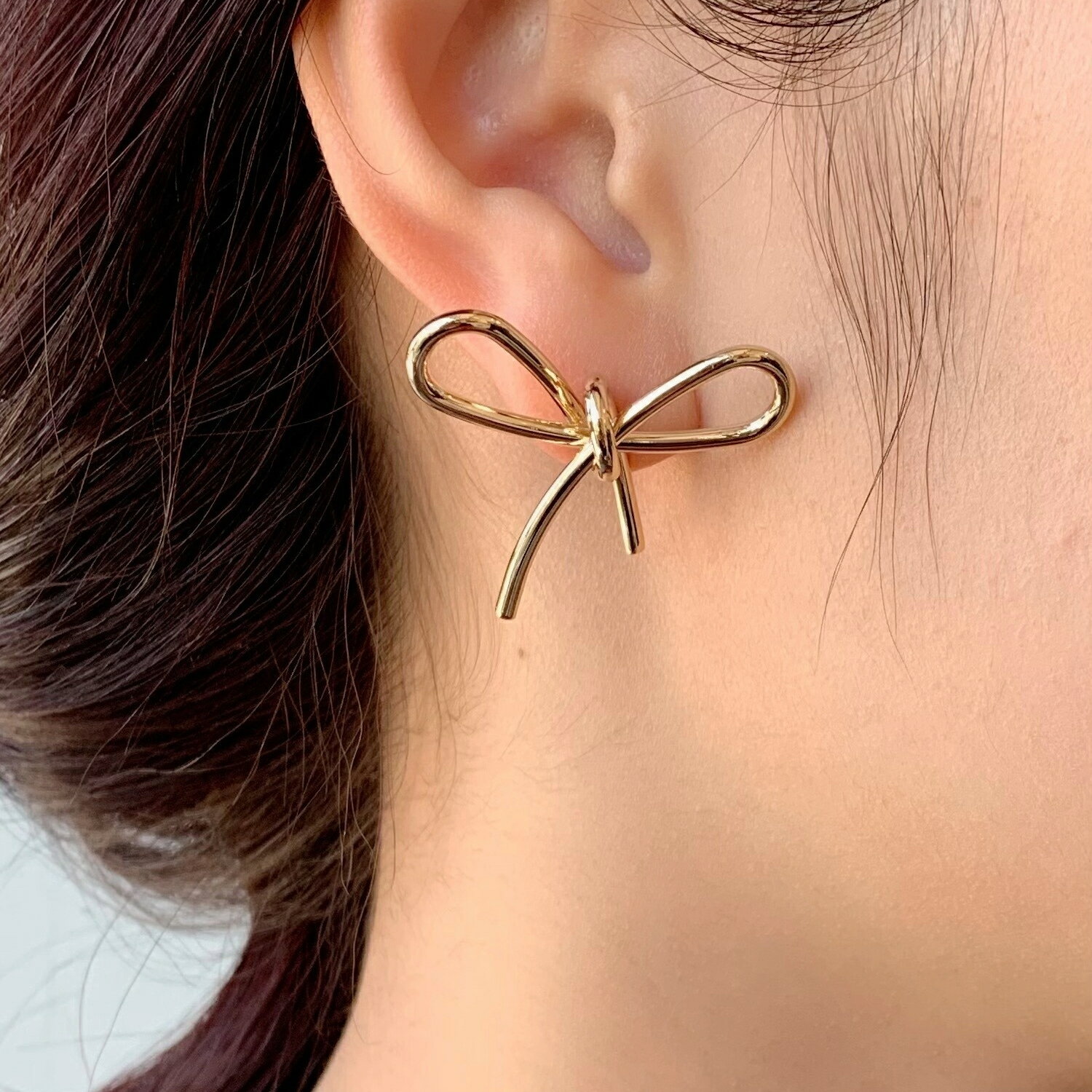 リボンピアス(両耳用)レディースアクセサリー結婚式パーティー誕生日プレゼントシルバーゴールドピンクゴールドシンプル