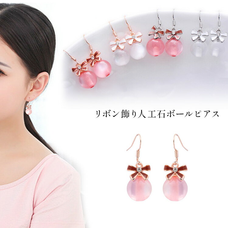 レディースピアスリボンモチーフボール型ピアス人工石人工パールアクセサリー入学式入園式結婚式二次会パーティイベントデートおしゃれeh5212