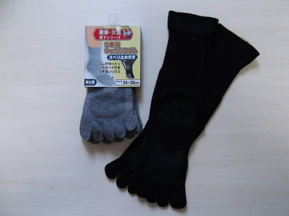 靴下ソックス5本指男性メンズ紳士介護介護靴下ゆったり伸びる綿神戸生絲すべり止め付5本指靴下紳士用