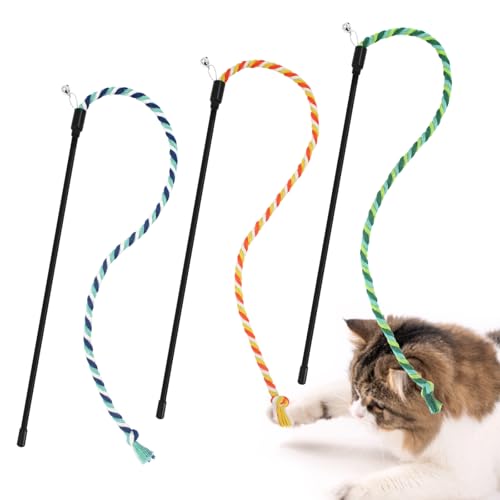 SONGWAY猫じゃらし猫おもちゃ人気綿紐竿頑丈ストレス解消3本3色入り