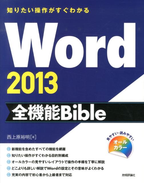 【中古】Word2013全機能Bible知りたい操作がすぐわかる オ-ルカラ-/技術評論社/西上原裕明(大型本)