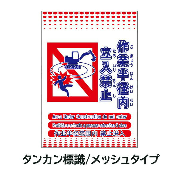 メッシュタンカン標識作業半径内立入禁止4か国語対応ML単管垂れ幕メッシュたれ幕単管標識