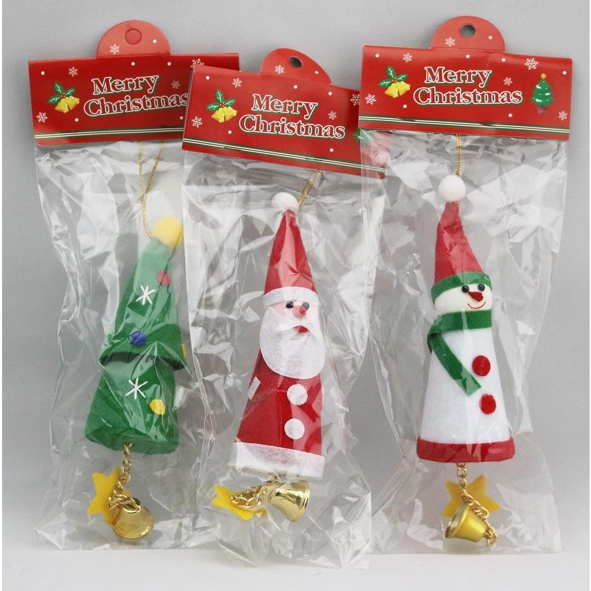 サンタクロース・クリスマスツリー・ゆきだるまのオーナメントセット。 鈴付き。 ツリーやお部屋の飾りに。 長さ:本体約12cm、鈴まで20cm・注意事項:モニターの発色によって、実際のものと色が異なる場合がございます。 ・古物商許可証番号:第211170000985