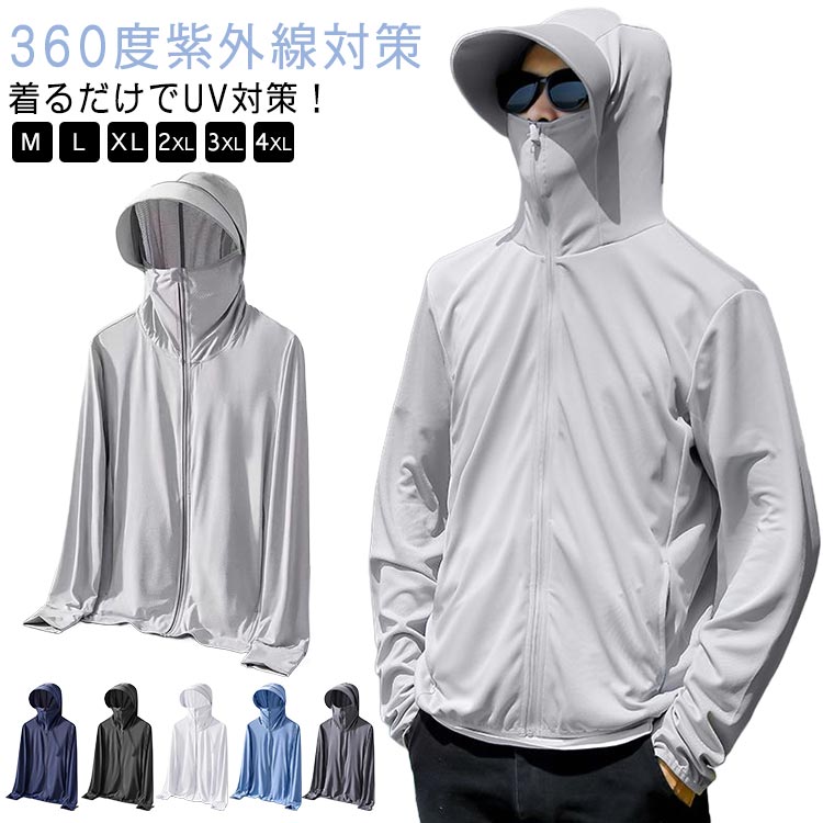 薄手メンズアウター通気性サンバイザーラッシュガード大きいサイズUVカットパーカーUVパーカー夏吸湿速乾長袖ジップアップパーカー春長袖釣りトップス紫外線対策アウトドアスポーツ接触冷感