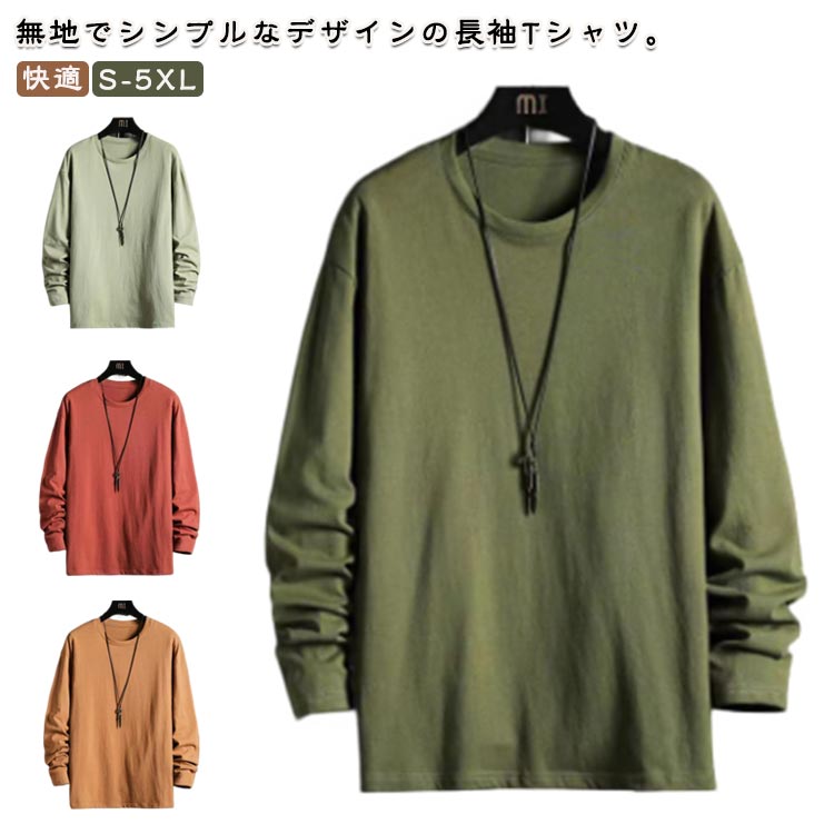 長袖tシャツメンズ無地Tシャツトップスカットソーゆったりクルーネックビッグシルエット秋服無地軽い柔らかいシルエットおしゃれファッショントレーナー秋冬快適シンプルインナー春夏秋冬送料無料ティシャツスポーツかっこいいカジュアル