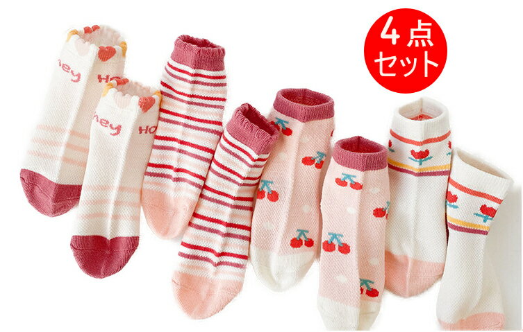 キッズメッシュソックス4足セット綿コットン97.5%男女兼用ユニセックス子供靴下ショートクルーソックス男の子女の子ベビー保育園幼稚園小学生女児男児男子入園入学子ども靴下通園通学夏用涼しい通気性1000円ポッキリ