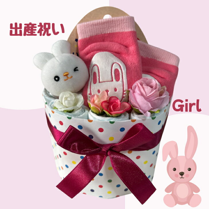 おむつケーキ女の子出産祝いうさぎベビーギフトオムツダイパーケーキパンパースお誕生【送料無料】