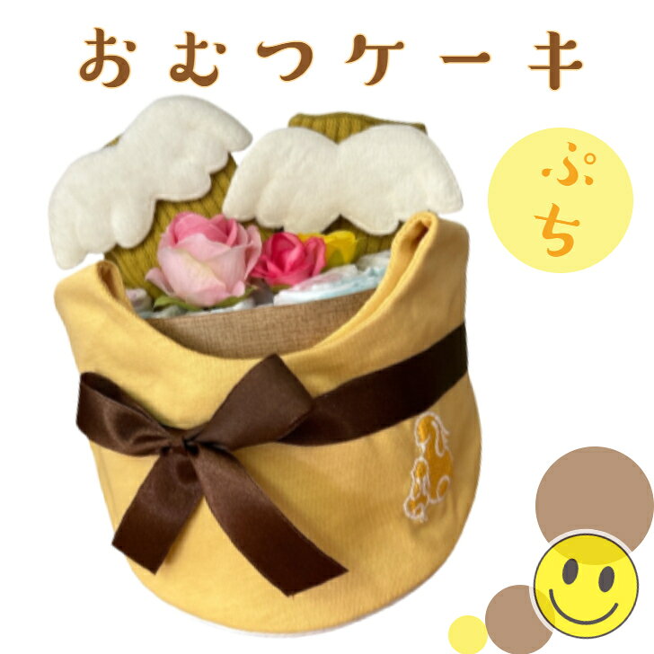 出産祝いおむつケーキプチ安いお手頃ギフト男の子女の子男女兼用スタイ天使の羽根靴下プチギフトナチュラルオムツケーキ出産祝贈り物プチプライスお手軽【送料無料】