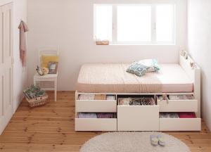 ベッド ショート丈 収納付きベッド マットレス付き 一人暮らし 収納 お客様組立 薄型プレミアムポケットコイルマットレス付き 横開き ヘッドレス シングル ショート丈 深さラージ 117,999 ~