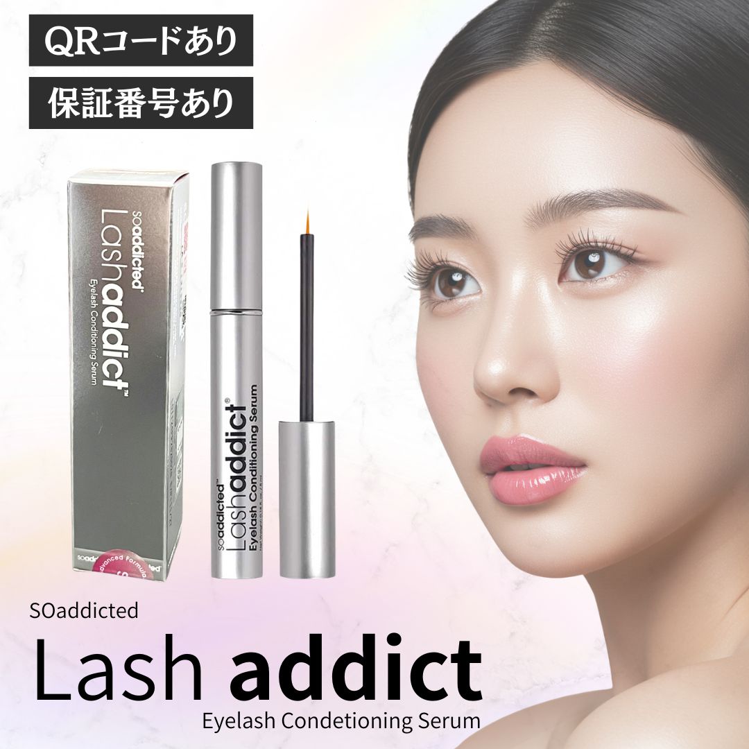 Lashaddict アイラッシュ コンディショニング セラム アドバンス 5ml まつ毛の根元にまっすぐアプローチ! 新たな植物エキスに加え、多様なアミノ酸の配合でペプチドの機能を強化してパワーアップ!ボリュームを与え濃密なまつ毛に導きます。まつ毛エクステ・まつ毛パーマをされている方にもご使用いただけます。ご使用方法1日1回(夜)、洗顔後の清潔な目元に使用します。少量をまつ毛の根元にアイラインを引くように、ひと塗りしてください。完全に乾いてから通常のスキンケアを行ってください。※塗りすぎることで肌トラブルを招く可能性がありますので、1回の使用目安量をお守りください。ご使用上の注意・手と目もとの皮膚が清潔な状態でご使用ください。・使用初期は、お肌に異常がないことをよく確認の上、ご使用ください。・塗布する部分及びその周囲に、傷、腫物湿疹等異常のある時はお使いにならないでください。・目に入らないようご注意ください。目の中に入った場合は十分に水またはぬるま湯で洗い流してください。・体調などのコンディションによっては塗布後にしみたり一時的に目もとが赤くなったりすることもございます。万が一赤みが出た場合は使用を一旦ストップし、 赤みが落ち着いてから3日に1度のペースで、更に少量からご使用を再開してください。・敏感肌の方や花粉症、アレルギーなどの症状をお持ちでまぶたが赤くなりやすいという方は2日に1回からのご使用をお勧めします。・万が一 強い痒みや、 かぶれが生じた場合はただちに医師に相談することをお勧めします。・下記のような場合にはご使用をお控えください。発熱、体調不良、病中病後、寝不足、極度の疲労、妊娠中又はその疑いがあるとき、アレルギー症状が出ているとき、目をこすりまぶたが赤みを帯びているとき・直射日光の当たる場所、乳幼児の手の届く場所には置かないでください。・お肌に合わない場合は使用をおやめください。・開封後は3か月を目安に使い切ってください。・本人以外の方との使いまわし等はお控えください。・コンタクトレンズ装着の方、まつ毛エクステ中の方もご使用いただけますが、目元部位に触れる際の衛生面にご注意ください。・まつ毛以外への使用は避けてください。成分水、リゾビアンガム、ヒアルロン酸Na、BG、ヒドロキシエチルセルロース、ビオチン、パンテチン、加水分解ムコ多糖、ペポカボチャ種子エキス、エンドウ芽エキス、アカツメクサ花エキス、デキストラン、アセチルテトラペプチド-3、ラリックスエウロパエア木エキス、チャ葉エキス、リンゴ果実培養細胞エキス、海水、アラニン、アルギニン、アスパラギン、アスパラギン酸、システイン、グルタミン、グルタミン酸、グリシン、ヒスチジン、イソロイシン、ロイシン、リシン、メチオニン、フェニルアラニン、プロリン、セリン、トレオニン、トリプトファン、チロシン、バリン、フェノキシエタノール、パンテノール、ダイズ油、グリセリン、ホスファチジルコリン、ミリストイルペンタペプチド-17、クエン酸、イソプロピルクロプロステネート 5 ラッシュアディクト アイラッシュ コンディショニングセラム 5ml まつ毛美容液 Lashaddict 製造番号 シリアルナンバー QR付 【正規品】 5,799 ~