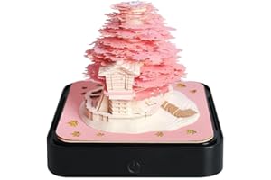 立体視3Dカレンダー ライト付き、カレンダー メモ帳、クリエイティブ デスク カレンダー、キノコハウス/ツリーハウス/黄鶴楼/地球/天壇の形、3D カレンダー DIY紙彫刻アートクラフト彫刻デスクトップ装飾 (ツリーハウス-ピンク)