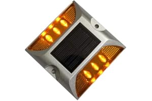 ソーラー 充電 道路鋲 LED ライト 点滅 両面テープ付き 耐重量 20t 夜間 自動点滅 安全 駐車場 側溝 縁石 両面テープ付き… (イエロー2個セット)