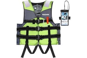 Reedark ライフジャケット 新型 釣り 大人用 子供用 フィッシングベスト 呼び子付き 救命胴衣 フローティングベスト+スマホ防水ケースセット 災害用 水泳 海水浴 緊急用 CE認証取得済 (5色&4サイズ))