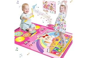 ピアノマット おもちゃ ドラムセット 多機能 音楽マット 折り畳み ミュージックマット 8鍵盤 6種類動物音 17デモ曲 6種類楽器音 録音 再生 音量調整 防水素材 滑り止め 知育玩具 音楽プレイマット 子供 女の子 男の子 誕生日 クリスマス 新