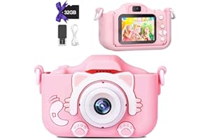 Pinguma キッズカメラ トイカメラ 子供用カメラ 女の子 デジタルカメラ 動画カメラ 2.0インチIPS 画面 1080P HD 8倍ズーム タイマー撮影 32GBメモリーカード付き 5-10 歳 女の子 誕生日プレゼント【最新アップグレード版