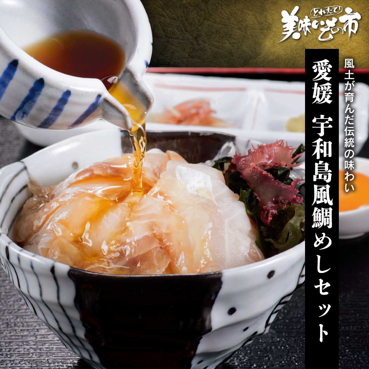 一般的な鯛めしは炊き込みご飯がほとんどですが、宇和島風鯛めしはお刺身用にスライスした鯛の身を熱々ご飯にのせ、出汁と卵黄を絡めてかっ込むスタイル。 愛媛県産の新鮮な真鯛の旨み、瀬戸内の煮干しやかつお節を煮出して作った出汁の香り、卵黄のコク、それが三位一体となって口の中に広がる、まさに素材の魅力を最大限感じられる至高の鯛めしと言えます。 風土が育んだ伝統の味わい 一般的な鯛めしは炊き込みご飯がほとんどですが、宇和島風鯛めしはお刺身用にスライスした鯛の身を熱々ご飯にのせ、出汁と卵黄を絡めてかっ込むスタイル。 愛媛県産の新鮮な真鯛の旨み、瀬戸内の煮干しやかつお節を煮出して作った出汁の香り、卵黄のコク、それが三位一体となって口の中に広がる、まさに素材の魅力を最大限感じられる至高の鯛めしと言えます。 愛媛宇和島風鯛めしセット 内容量 (鯛切り身65g(12枚)、たれ40g)×3個食塩相当量:4.16g/100g 原産地 天然真鯛(愛媛県) 加工地 愛媛県伊予市 賞味保証期間 冷凍60日、解凍後早め アレルギー表示 原材料の一部に、大豆・小麦を含む 愛媛宇和島風鯛めしセット「ねこぶだし」でおなじみ「とれたて!美味いもの市」から登場 3,790 ~