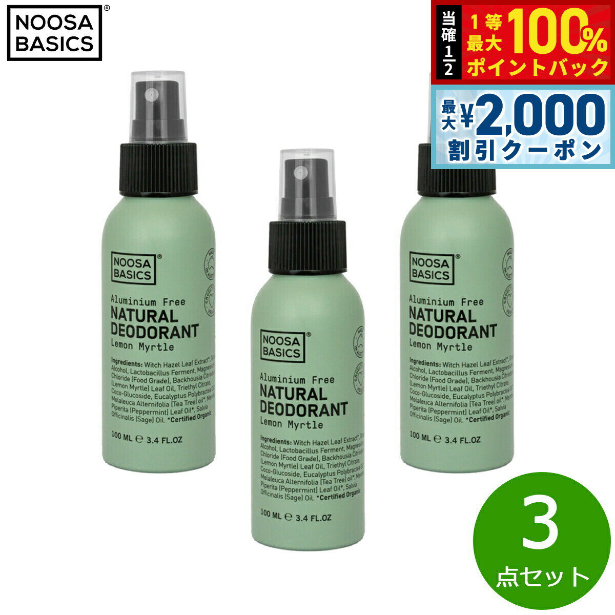 【抽選で最大10000ptバック!お買物マラソン限定!】NOOSA BASICS ボディスプレー レモンマートル 100ml×3点【送料無料】 8,580 ~