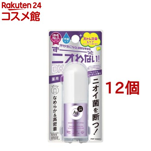 お店TOP>化粧品>ボディケア>ボディケア(デオドラント・制汗剤)>ボディパウダー>その他>エージーデオ24 デオドラントスティック EX フレッシュサボンの香り (20g*12個セット)商品区分:医薬部外品【エージーデオ24 デオドラントスティック EX フレッシュサボンの香りの商品詳細】●ニオイ菌を殺菌(有効成分:IPMP(イソプロピルメチルフェノール))。 ●汗臭はもちろんストレス臭*までケア。 ●24時間、肌快適ケア。 ●いつでもどこでもずーっと快適な肌を願う人へ。 ●なめらか&高密着な使い心地。 ●清潔感ただようフレッシュサボンの香り。 *ストレス臭を包み込んで嫌なニオイを目立たなくするSTハーモナージュ香料配合 【販売名】 デオドラントスティック Nb(SV)#AGデオ24 #エージーデオ24 #ボディ #デオドラント #汗対策 #スティック【使用方法】・容器の下部を右に回して1cm程度をくり出し、適量を乾いた清潔な肌にムラなく塗布してください。 ・塗布後、乾いてから衣服を着てください。 ・ご使用後は口もとをきれいに拭き、中味が乾燥しないように必ずキャップをきちんと閉めてください。 【成分】イソプロピルメチルフェノール*、クロルヒドロキシアルミニウム*、酸化亜鉛*、デカメチルシクロペンタシロキサン、メチルフェニルポリシロキサン、ポリエチレンワックス、無水ケイ酸、水素添加ホホバ油、ジイソステアリン酸ポリエチレングリコール、無水リン酸水素カルシウム、合成ケイ酸ナトリウム・マグネシウム、濃グリセリン、メチルハイドロジェンポリシロキサン、アパサイダーC、ヒアルロン酸ナトリウム(2)、香料 *は「有効成分」無表示は「その他の成分」 <M118810-203>【注意事項】・顔、粘膜、傷口、除毛直後にはお使いにならないでください。 ・スティックを落としたり、出しすぎると折れることがありますので、ご注意ください。 ・乳幼児の手の届かないところに置いてください。 ・日のあたるところや高温のところに置かないでください。 ・お肌に異常が生じていないかよく注意して使用してください。 傷やはれもの・湿しんなど異常のある部位にはお使いにならないでください。 また、赤み・はれ・かゆみ・しげき・色抜け(白斑等)や黒ずみなどの異常があらわれたときは、使用を中止し、皮ふ科医などにご相談ください。 続けてお使いになりますと悪化させることがあります。 目に入らないよう注意し、入ったときはすぐに洗い流してください。 【原産国】日本【ブランド】エージーデオ24(Ag deo 24)【発売元、製造元、輸入元又は販売元】ファイントゥデイ※説明文は単品の内容です。 リニューアルに伴い、パッケージ・内容等予告なく変更する場合がございます。 予めご了承ください。 ・単品JAN:4901872461028ファイントゥデイ108-0075 東京都港区港南2-16-30120-202-166広告文責:楽天グループ株式会社電話:050-5306-1825[ボディケア/ブランド:エージーデオ24(Ag deo 24)/] エージーデオ24 デオドラントスティック EX フレッシュサボンの香り(20g*12個セット)【エージーデオ24(Ag deo 24)】 13,037 ~