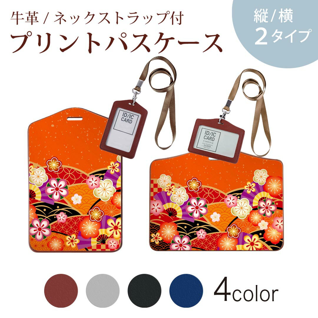 パスケース定期入れICIDカード入れグレーブラックブラウンネックストラップ付社員証入れ通学通勤passcase005457和風 和柄 花