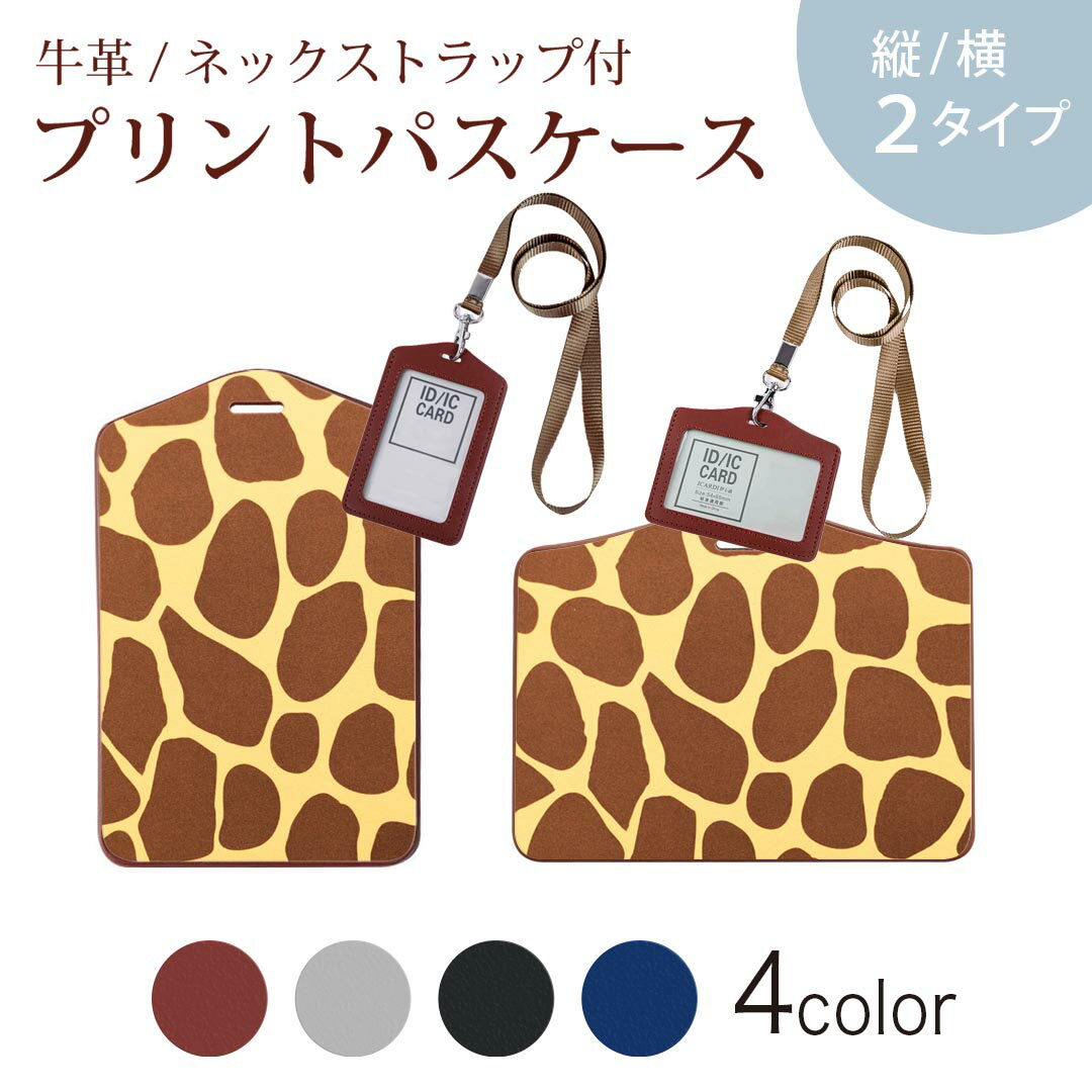 パスケース定期入れICIDカード入れグレーブラックブラウンネックストラップ付社員証入れ通学通勤passcase006925ジラフ柄 模様 動物