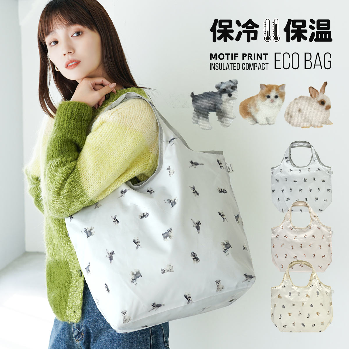 【対象品が最大半額★ダーツ祭開催中】エコバッグ 保冷 保温 折りたたみ コンパクト 大容量 軽い 軽量 おしゃれ かわいい レジかご レジバッグ 買い物バッグ マイバッグ ファスナー付き 洗える 犬 猫 うさぎ アニマル柄 プレゼント ギフト 1,980 ~