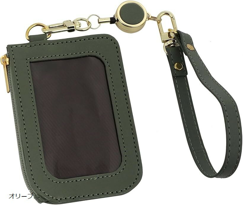 紛失防止パスケース 定期入れ リール付き レディース ファスナー付き PUレザー 通勤 通学 子供 ICカード対応 伸縮リール (オリーブ) 1,880 ~