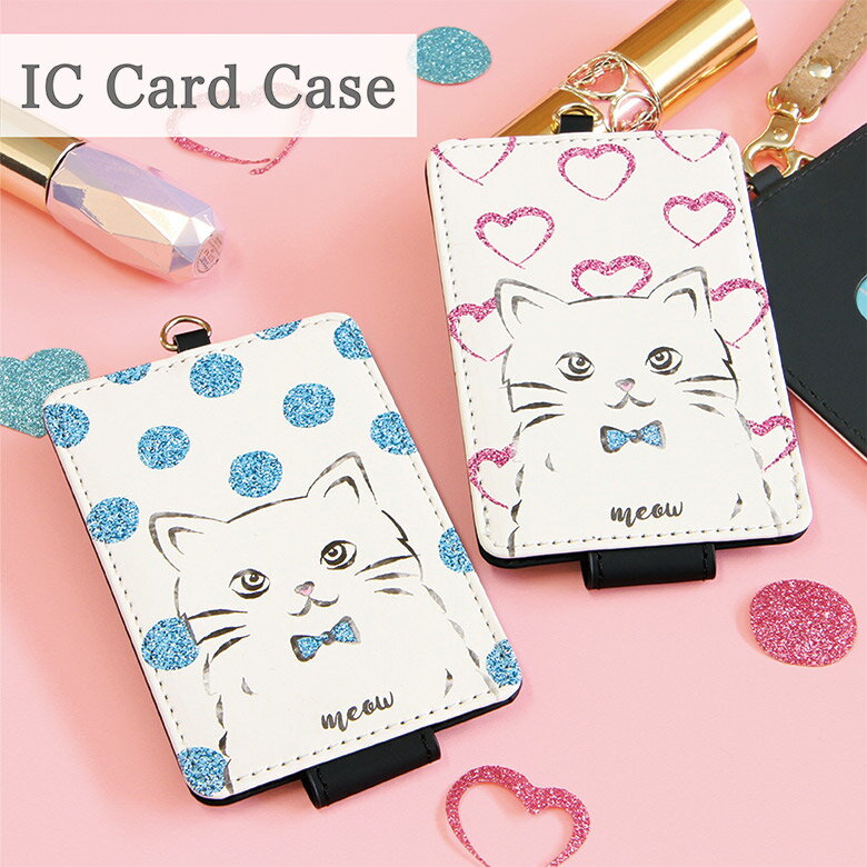(15%OFFクーポン 4日20時〜5日) パスケース GLITTER CAT | ストラップ 定期入れ ICカード ケース ストラップ レディース 通勤 通学 雑貨 猫 ねこ ネコ アニアル 動物 ドット 水玉 星 ピンクかわいい おしゃれ 1,015 ~