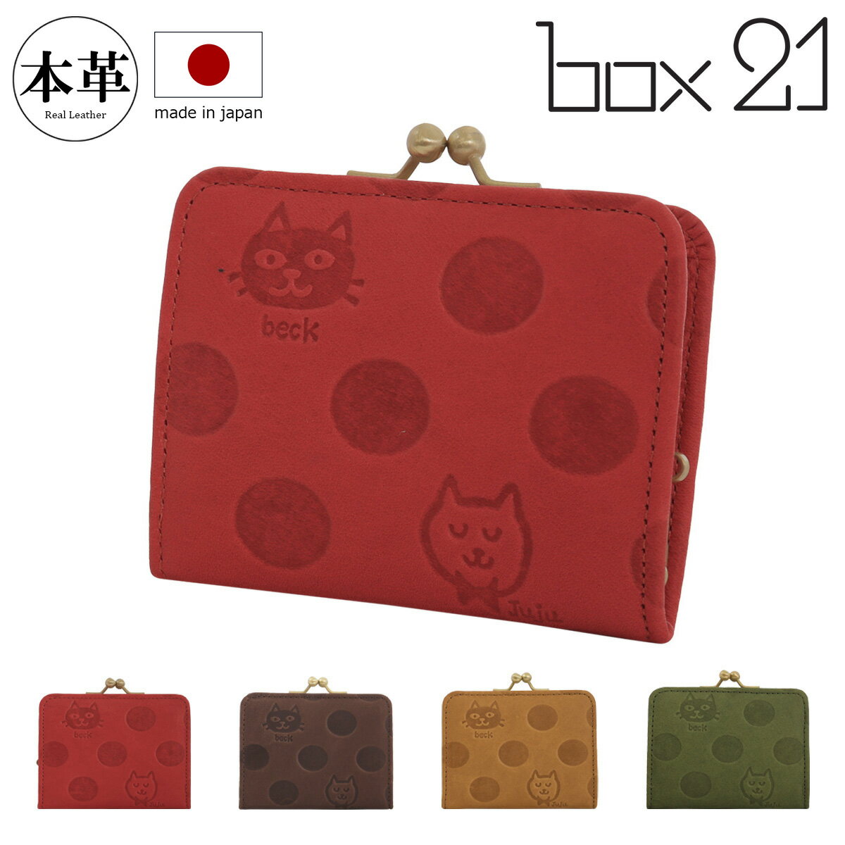 猫 コインケース 小銭入れ がま口 本革 BOX型 レディース 日本製 ジュジュアンドベック 333321 box21 ボックス21 juju&beck ドット 水玉 5,720 ~