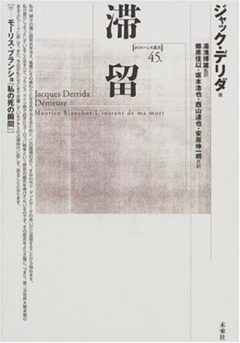 【中古】滞留/未来社/ジャック・デリダ(単行本)