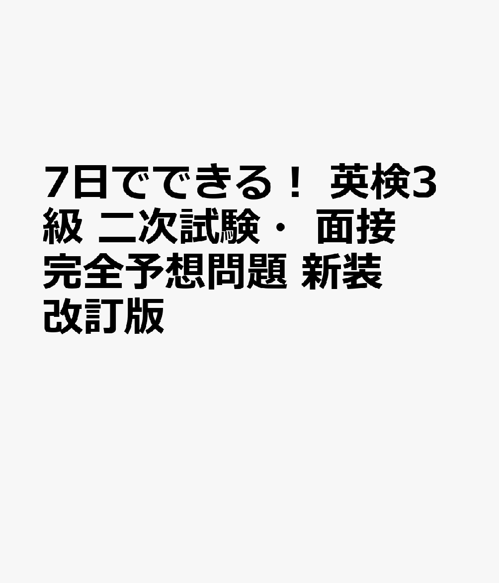 旺文社 旺文社ナノカデデキルエイケンサンキュウニジシケンメンセツカンゼンヨソウモンダイ オウブンシャ 発行年月:2026年05月28日 予約締切日:2026年02月25日 ページ数:96p サイズ:単行本 ISBN:9784010951163 本 語学・学習参考書 語学関係資格 英検 7日でできる! 英検3級 二次試験・面接 完全予想問題 [ 旺文社 ] 1,320 ~
