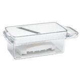 フタ付きで、冷蔵庫にそのまま保存できます。 目詰まりしにくいおろし板。 ハンドル付きで、持ちながら安定した状態でおろせる。 底面にすべり止めのゴム付き。