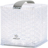 ・エコな電池要らずのソーラーパネル搭載で、約8時間でフル充電できます。 ※日陰や天候によってフル充電に8時間以上かかる場合があります。 ・上から軽く押さえるだけでコンパクトに折りたため、軽量なので持ち運びに便利です。 ・熱くなりにくいので安全です。 ・防水仕様になっているので、屋外での突然の雨や、水上で波飛沫がかかっても大丈夫です。 ・アウトドアや防災だけではなく、お部屋のインテリアや間接照明にもご使用いただけます。 ・テーブルなどに置いて使ったり、カラビナで吊るして使ったりと様々な使い方ができます。 ・使うシーンによって点灯モードを選べるので、アウトドア、室内、寝室、バスルームといろいろな場所で使いたくなるライトです。 ・10灯のLEDによる柔らかい灯りで癒されます。 ・スタイリッシュな光を放つ白色LEDタイプです。 (1)ソーラーパネルを太.........__ |