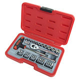 ・ボルトやナットに使用できるソケットレンチのセットです。 ・世界中に使用されている5種ボルト、ナットに対応しています。 ・差し込み角6.35mmハンドルに取り付け、使用してください。