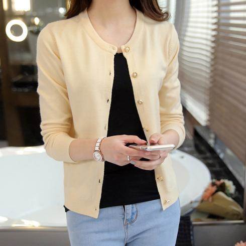 4,798 〜ニットレディース小熊刺繍クルーネックカーディガントップス長袖秋冬薄手修身無地アプリコットホワイトプラムブラックダークグレーネイビー通勤
